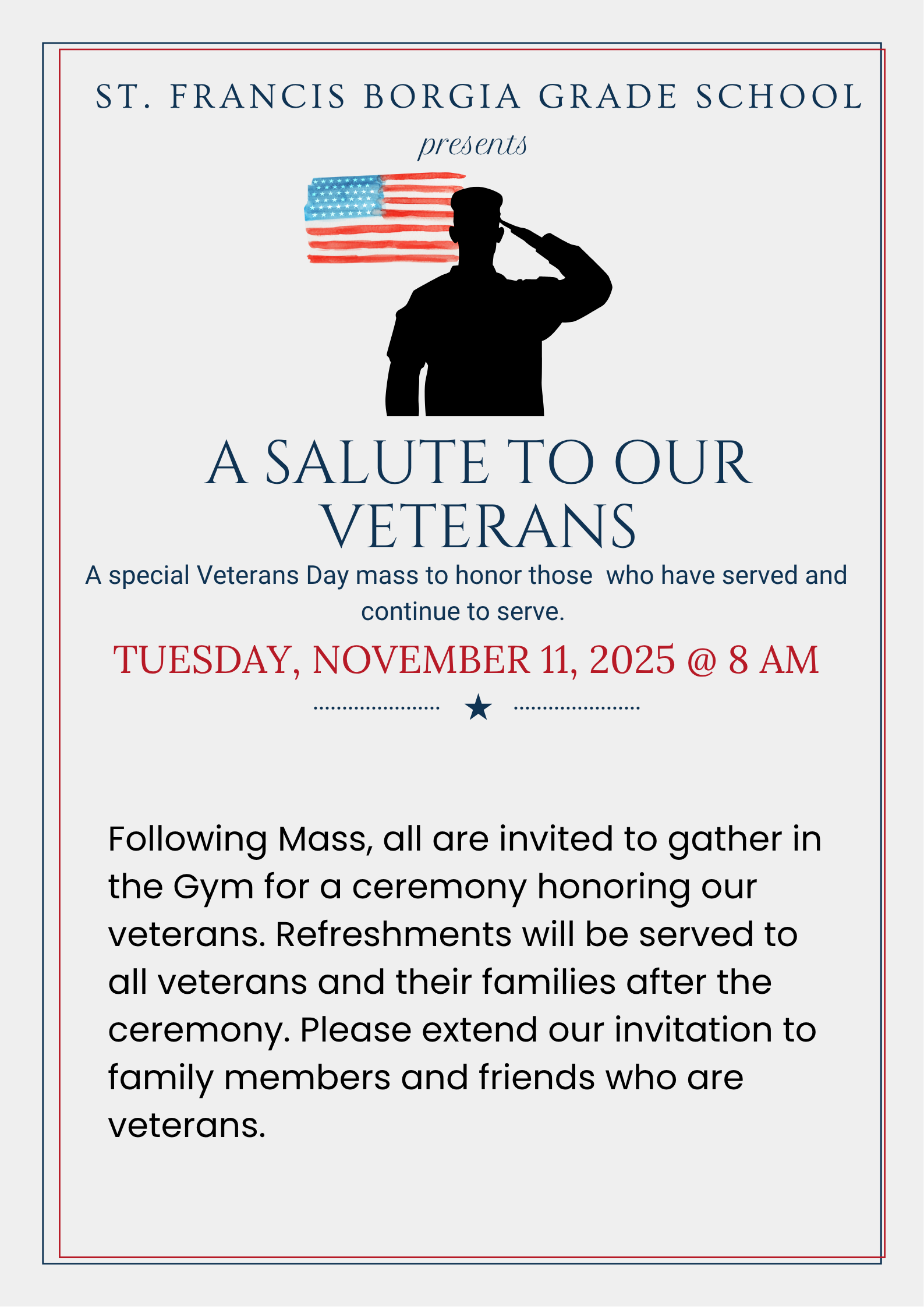 We cannot say enough about how amazing St. Francis Borgia truly is and what it means to our family. This school doesn’t just have the best staff; it also has the most amazing families. Most importantly, our kids are taught to love God and love each other.